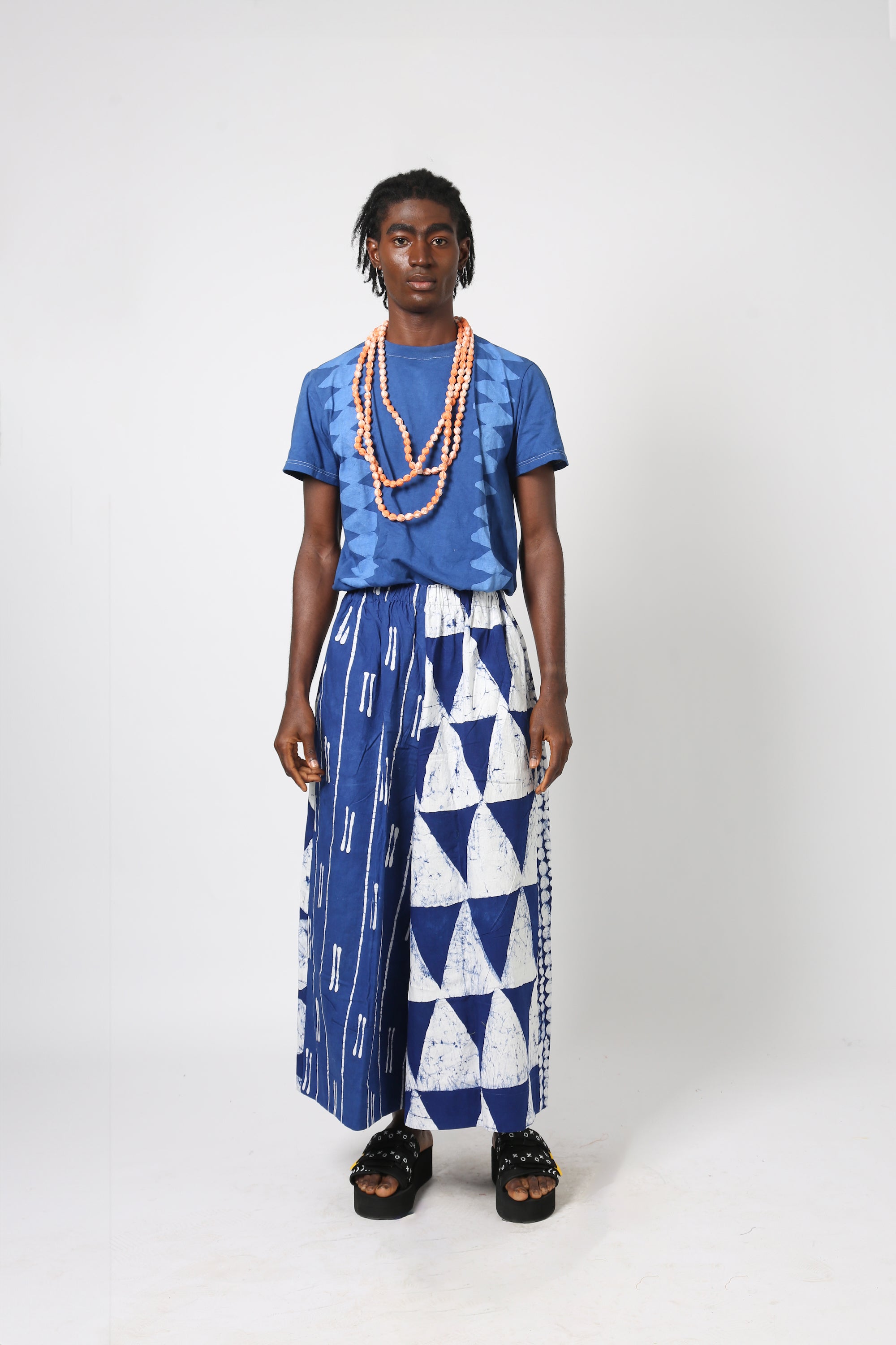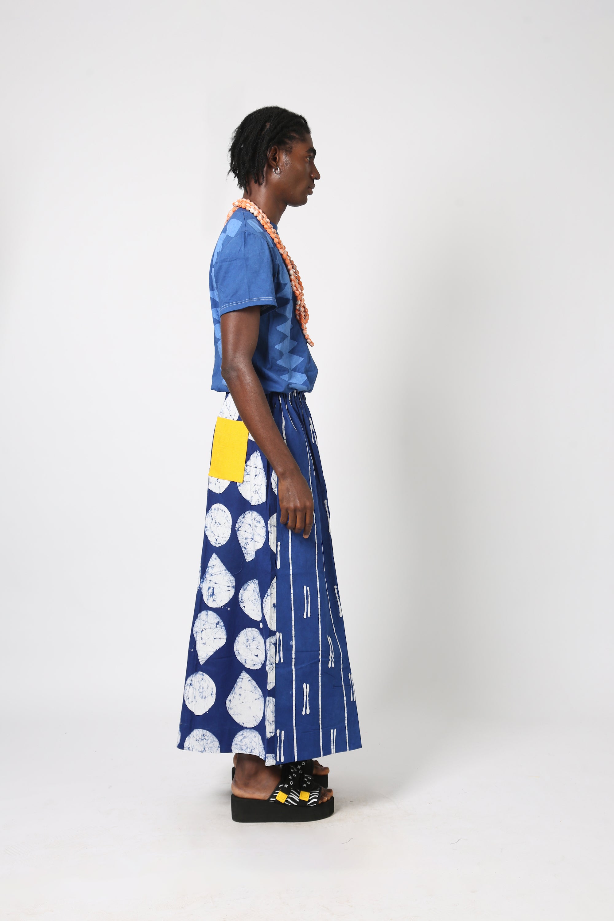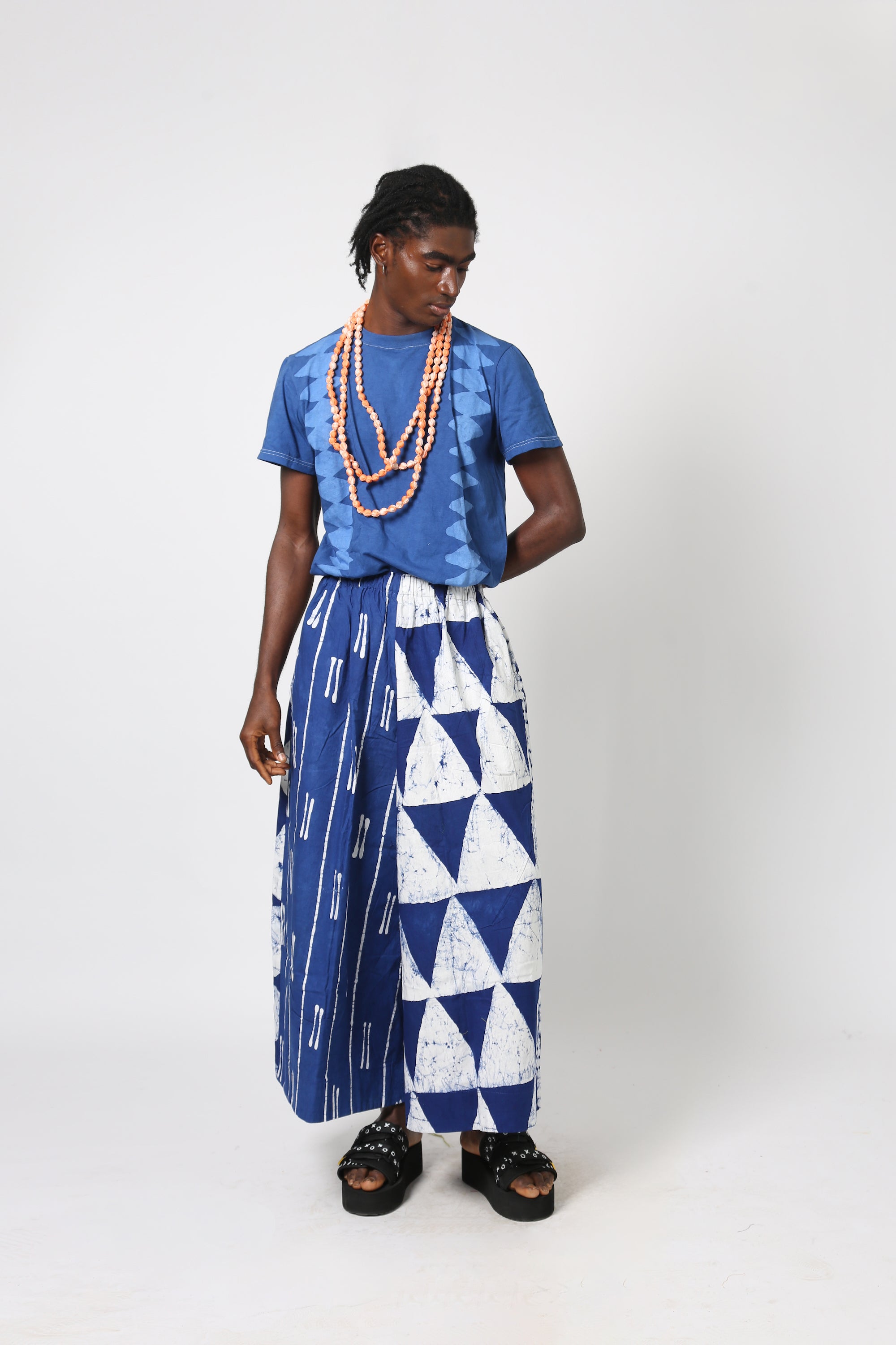 Each Dye Lab piece is made from small batches of hand-dyed textiles using batik wax to achieve our own formulated colors and prints and produced in Nigeria working with local artisans.