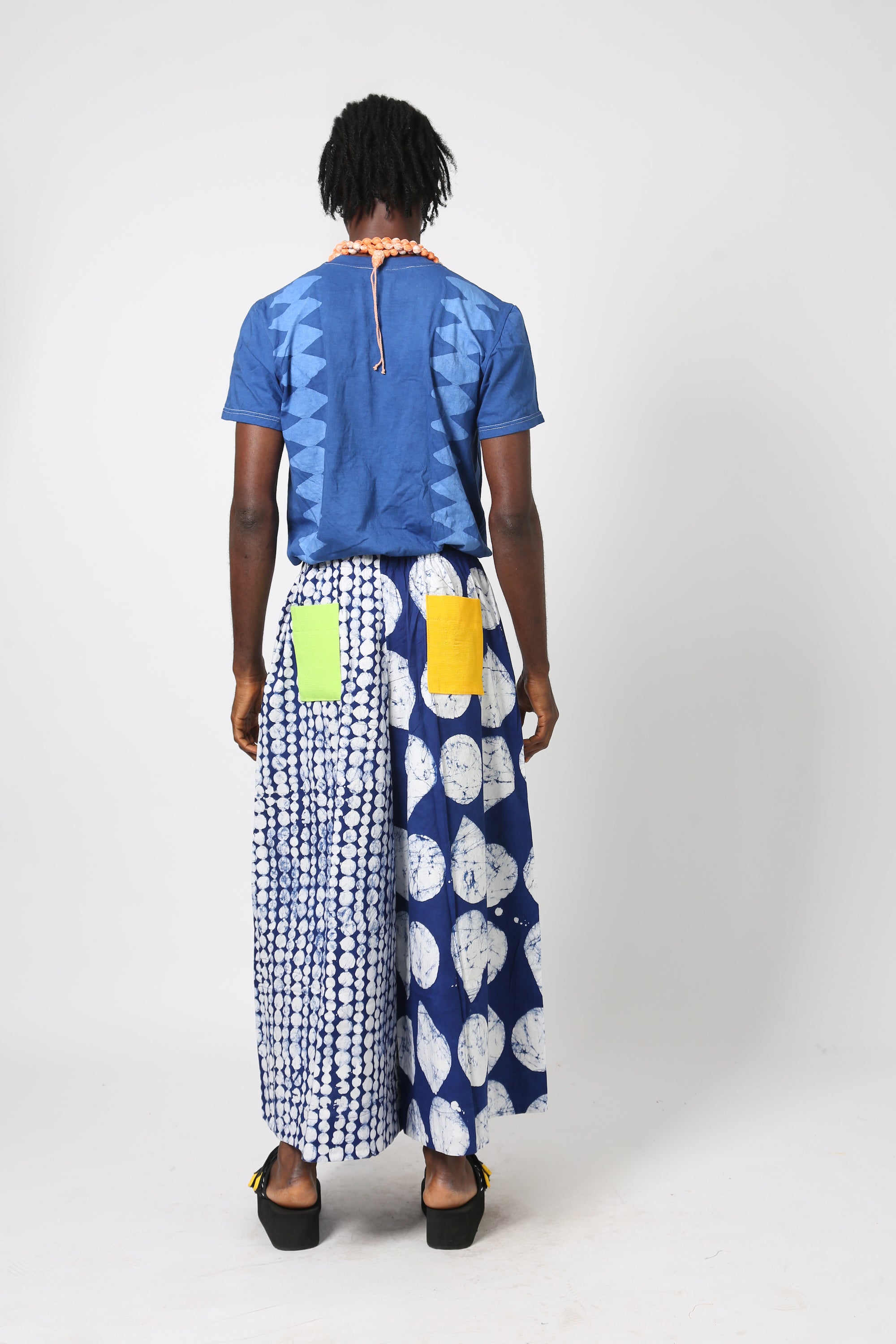 BLUE AND WHITE MULTIPRINT CULOTTES