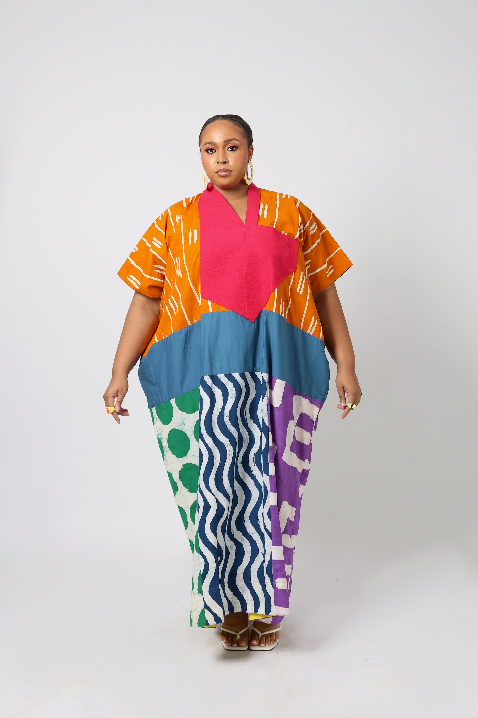 Each Dye Lab piece is made from small batches of hand dyed textiles using batik wax to achieve our own formulated colors and prints and produced in Nigeria working with local artisans.