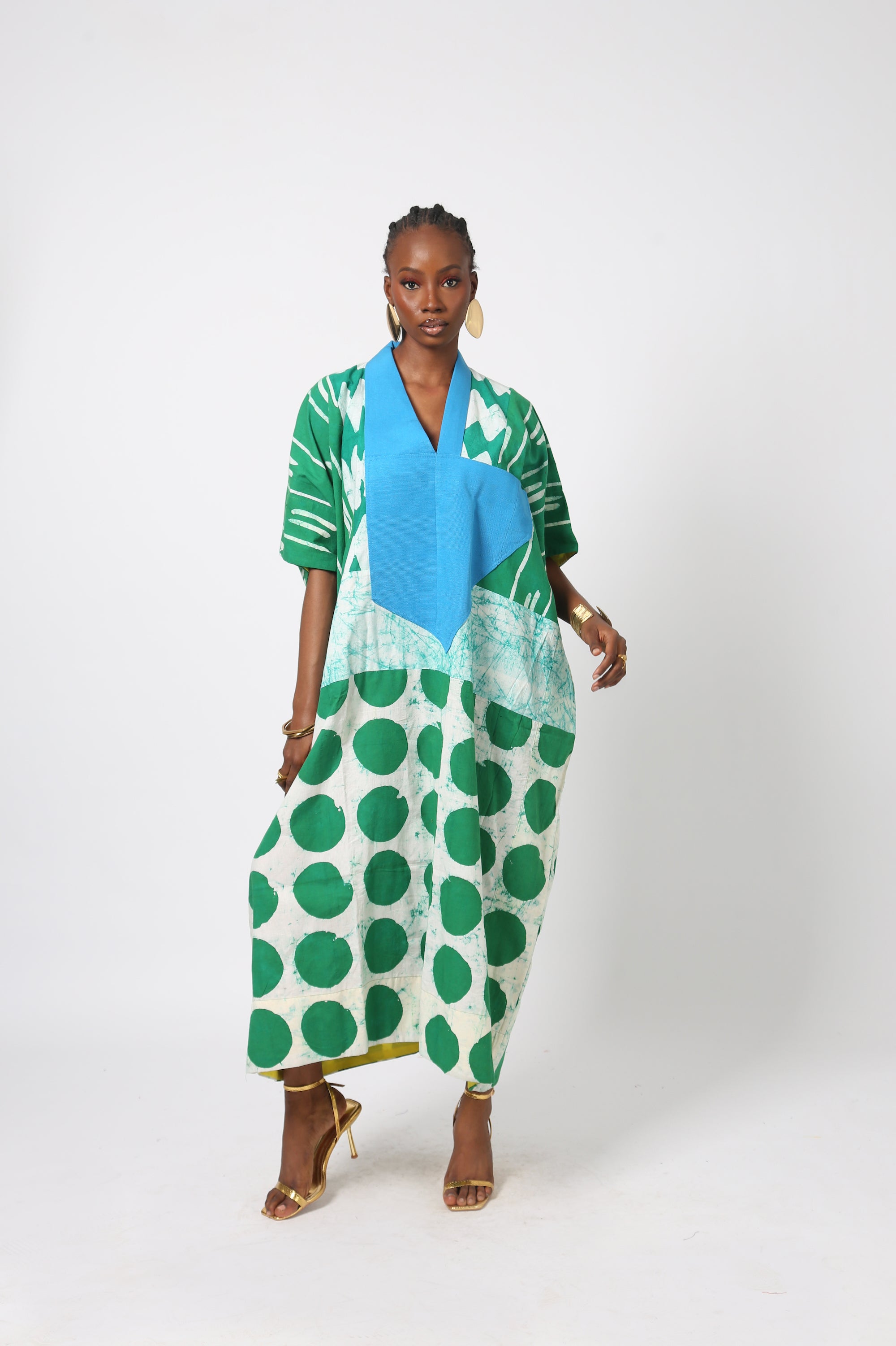 GREEN AND WHITE MULTPRINT AGBADA WITH ASO OKE