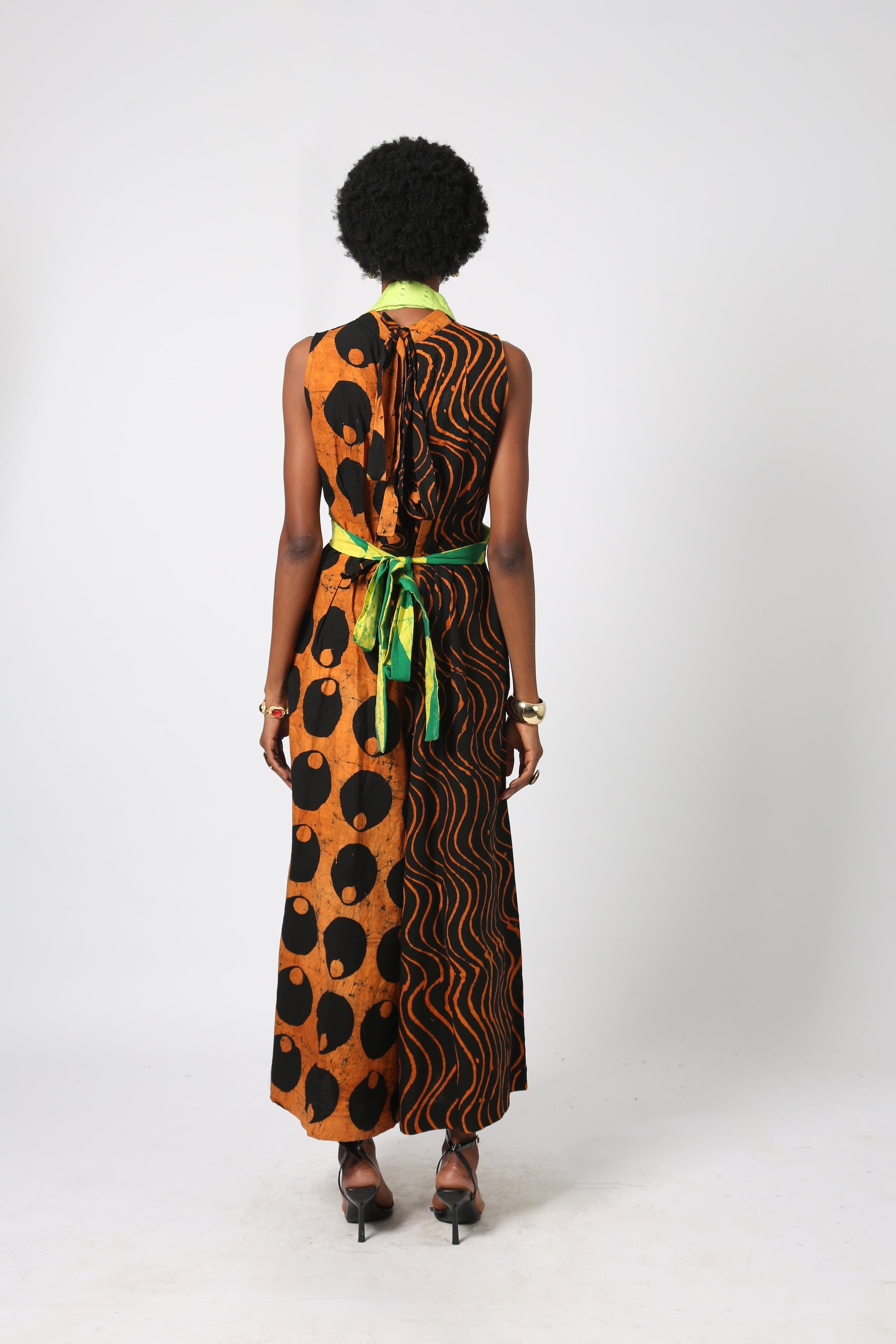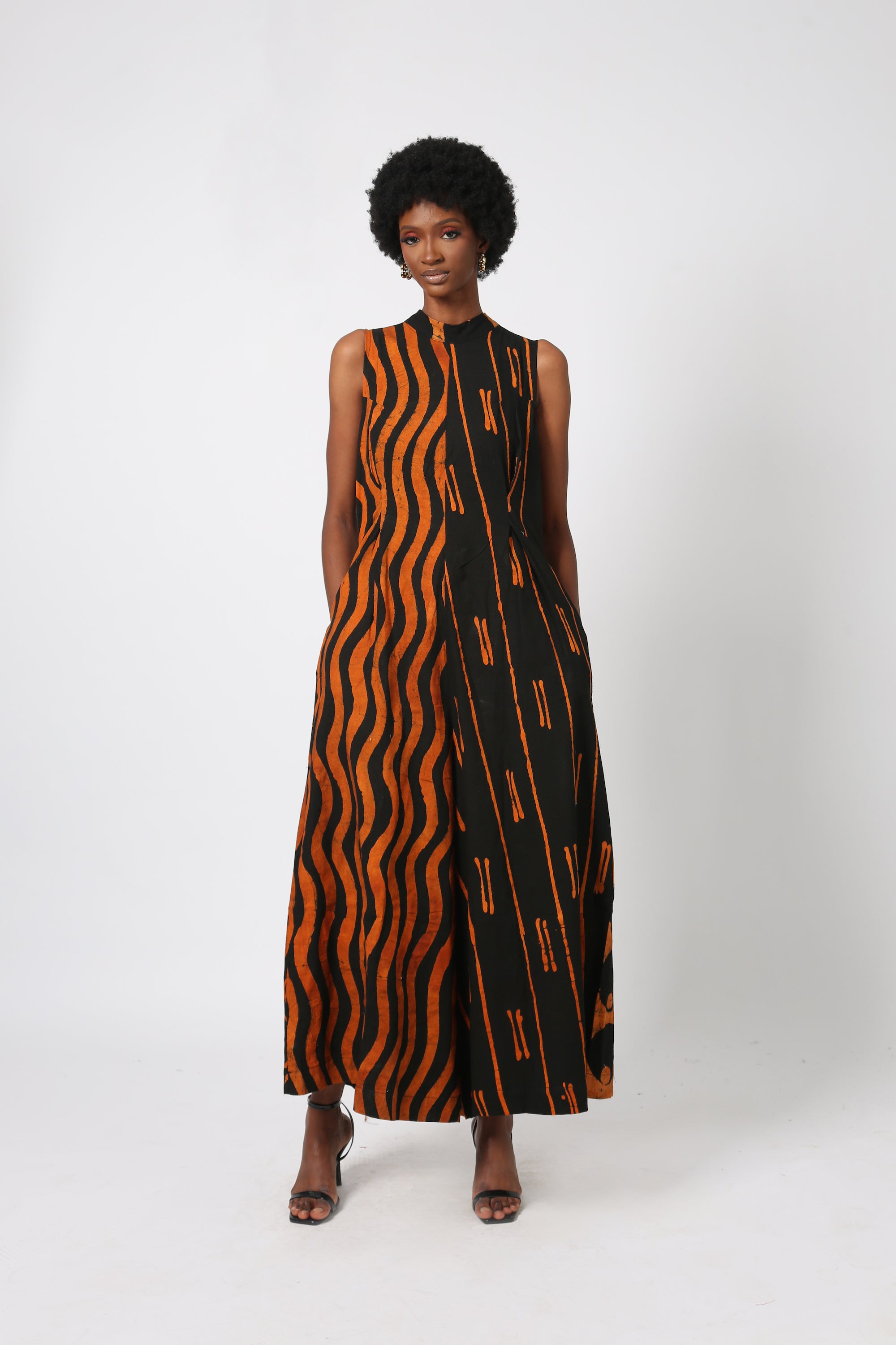 Each Dye Lab piece is made from small batches of hand-dyed textiles using batik wax to achieve our own formulated colors and prints and produced in Nigeria working with local artisans.