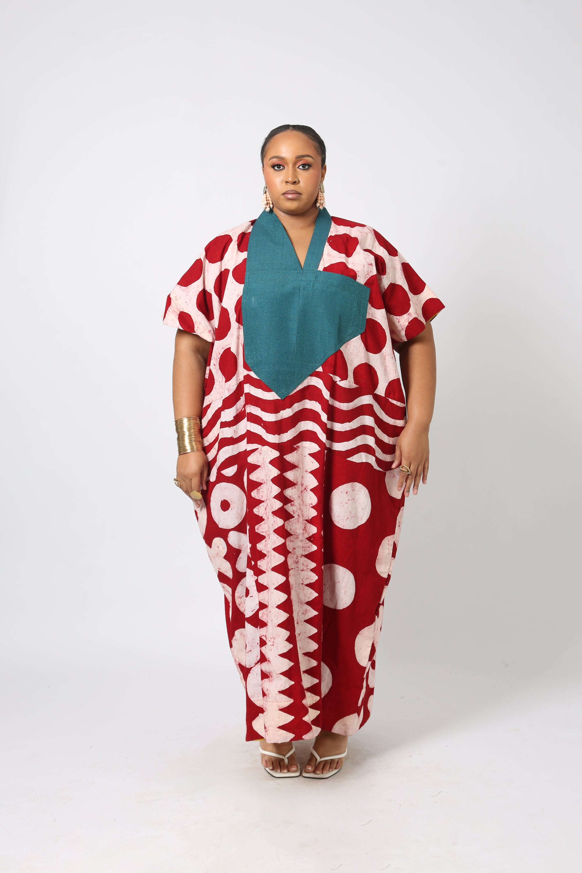 RED AND WHITE MULTIPRINT AGBADA WITH RED ASO OKE