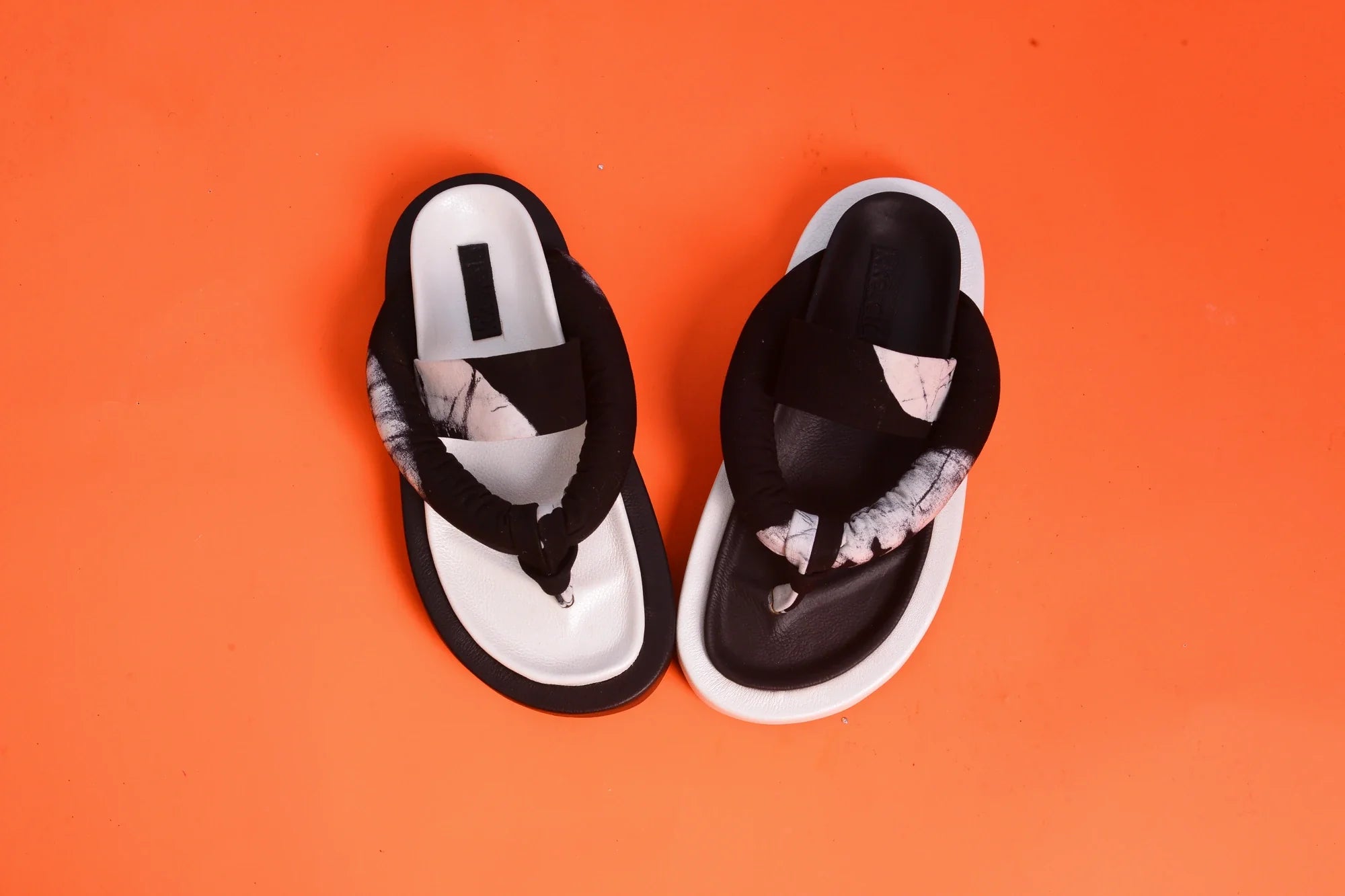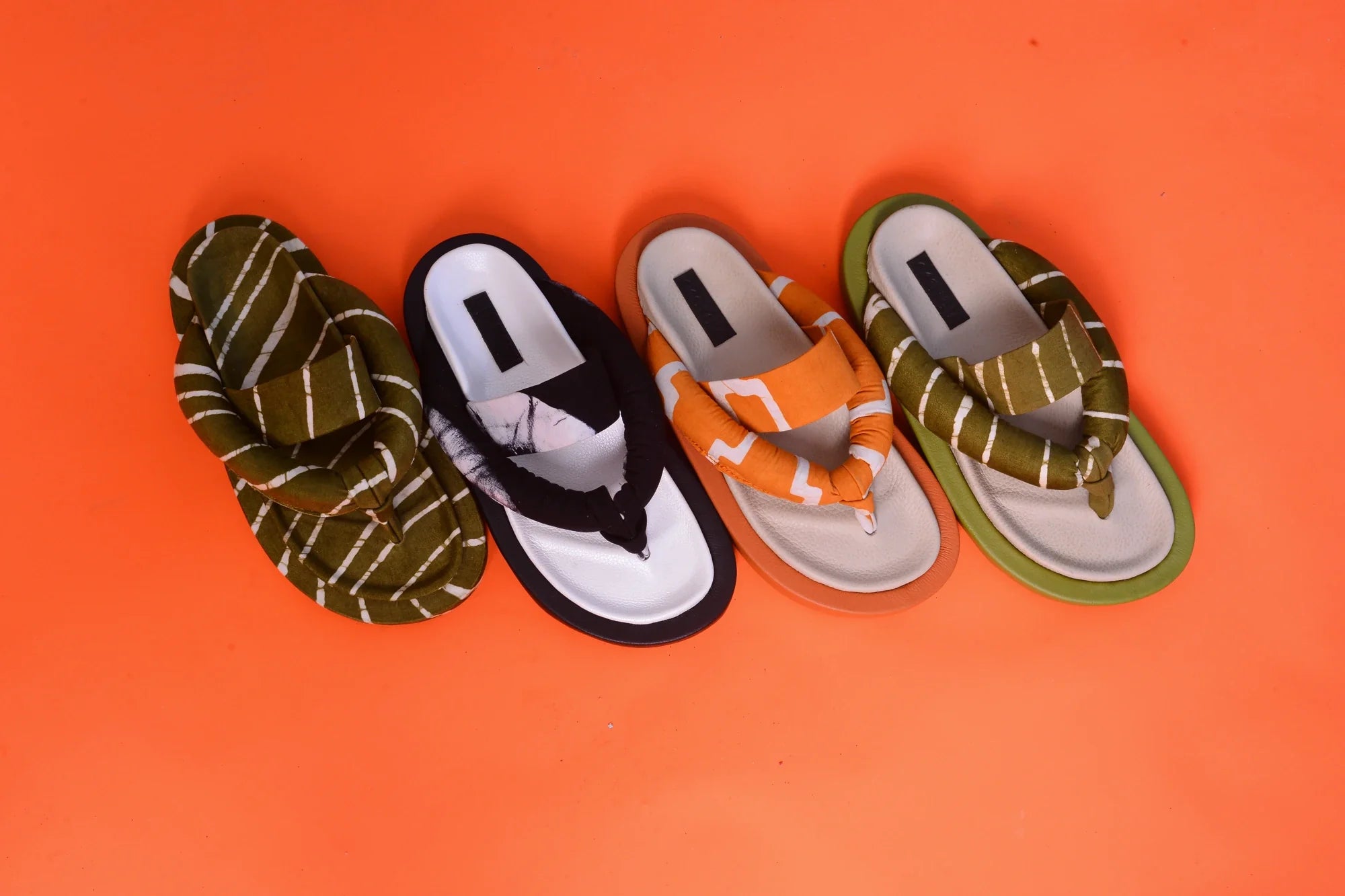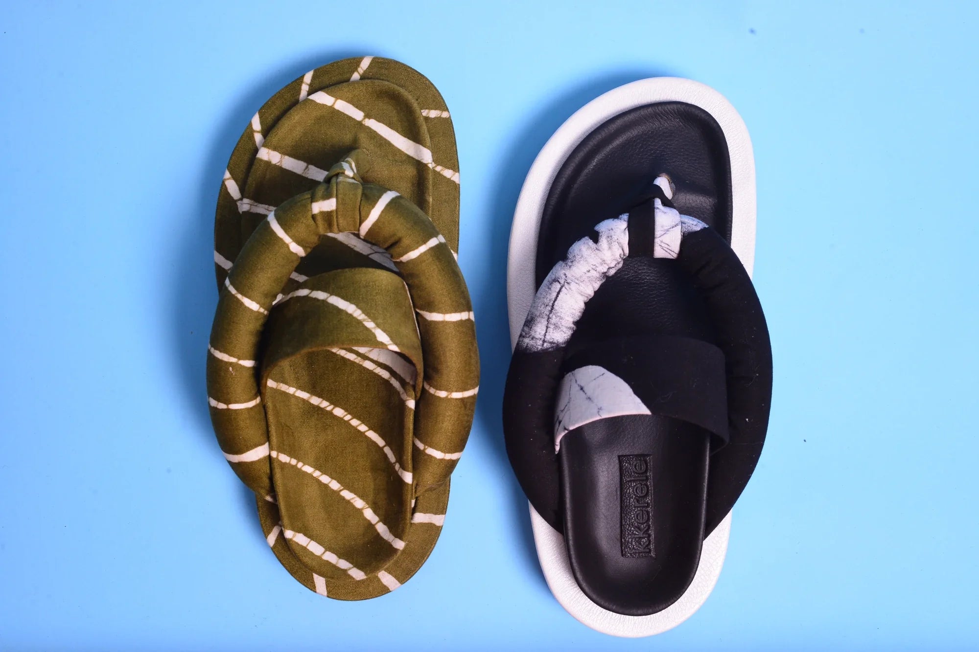Dye Lab joined forces with innovative Lagos design studio, Kkerele-- reimagining the classic Kkerele Bob sandal in Dye Lab's celebrated prints. A celebration of the influence and innovation of both brands in the footwear and garment spheres, centering their wearable artisanal pieces. Kkerele is a design studio located in Lagos, Nigeria exploring simple yet bold forms in hand-crafted Footwear design