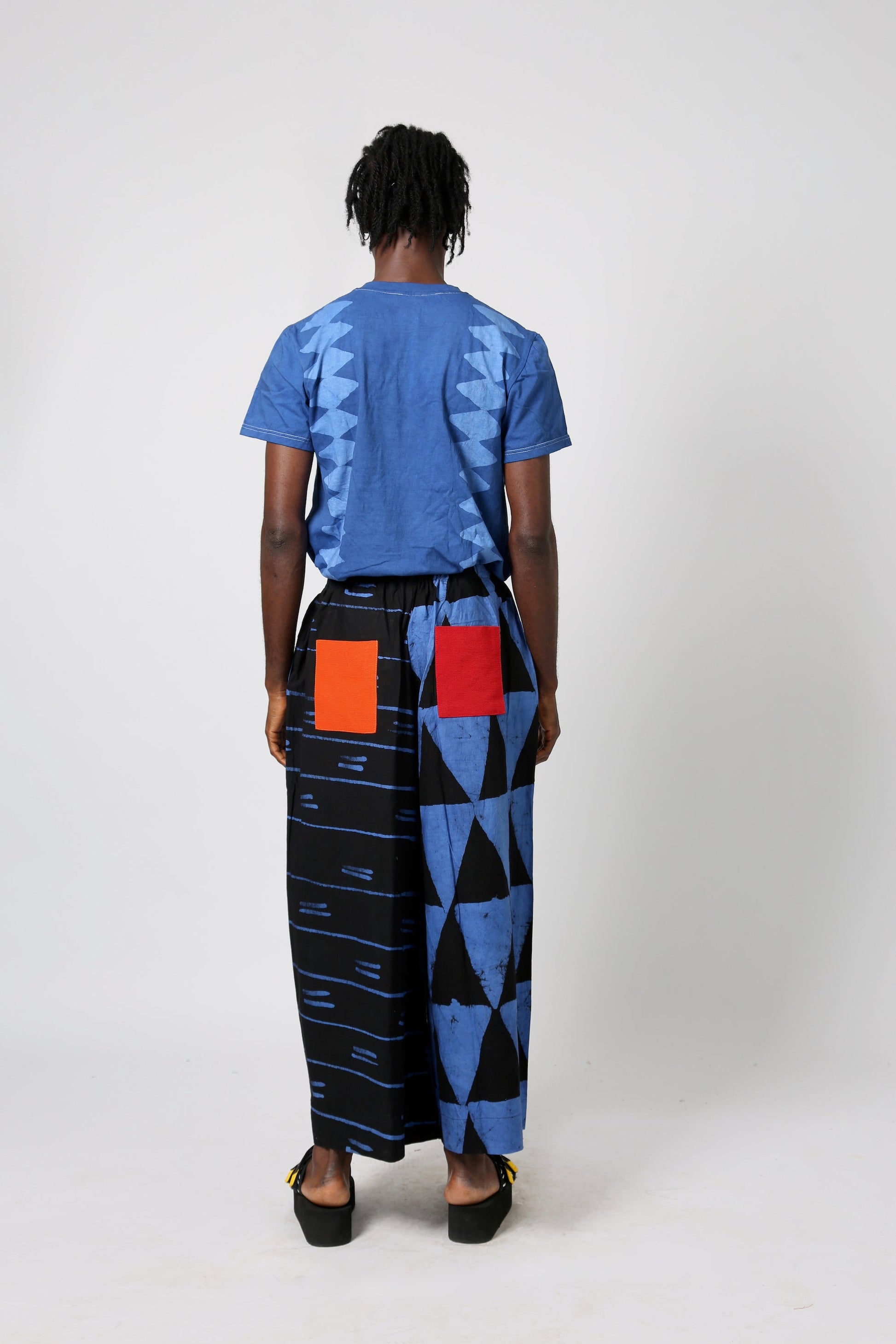 Each Dye Lab piece is made from small batches of hand-dyed textiles using batik wax to achieve our own formulated colors and prints and produced in Nigeria working with local artisans.