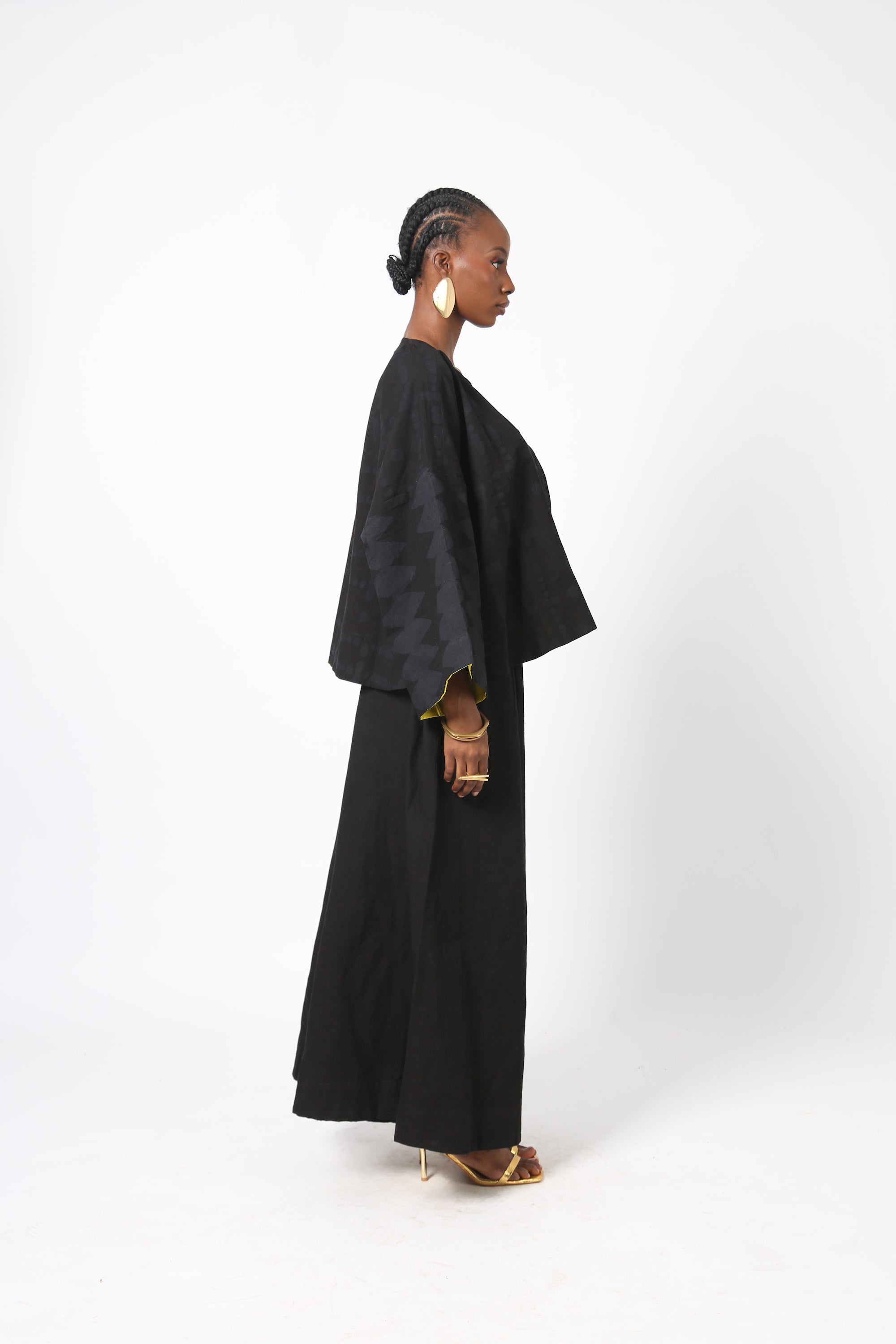 Buba style Shirt in black print, with a hand-woven black Aso Oke breast pocket detail. Made from 100% cotton. Styled as pictured, with matching Buba culottesTechnical DetailsMade from Funtua cottonAvailable in S/M (UK 8 - UK 12), M/L (UK 14...