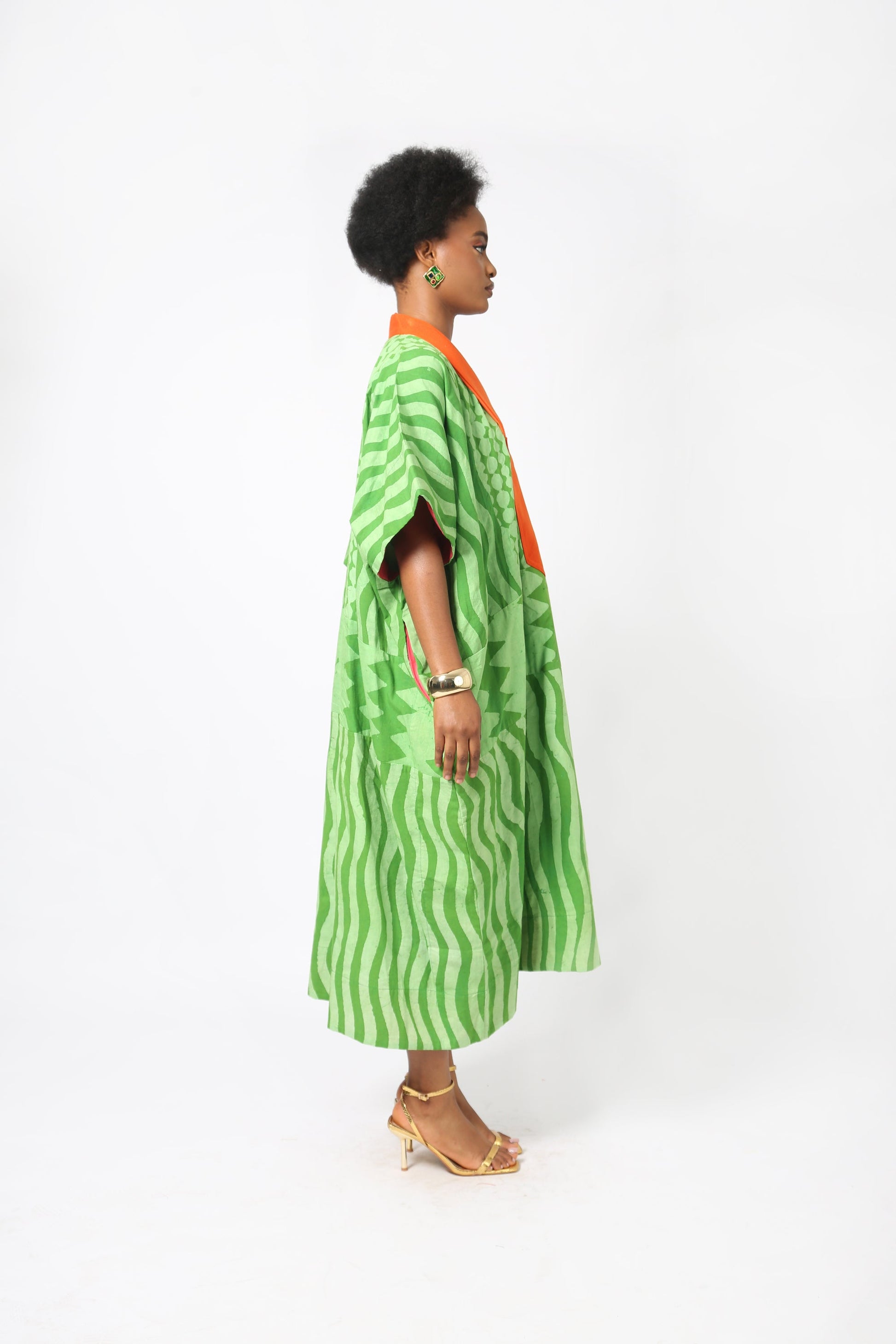 Each Dye Lab piece is made from small batches of hand dyed textiles using batik wax to achieve our own formulated colors and prints and produced in Nigeria working with local artisans.