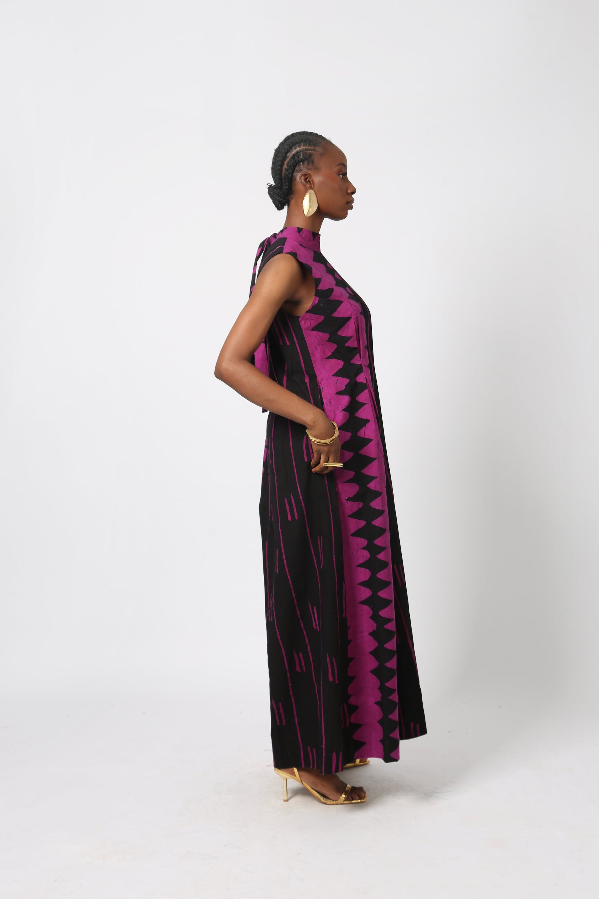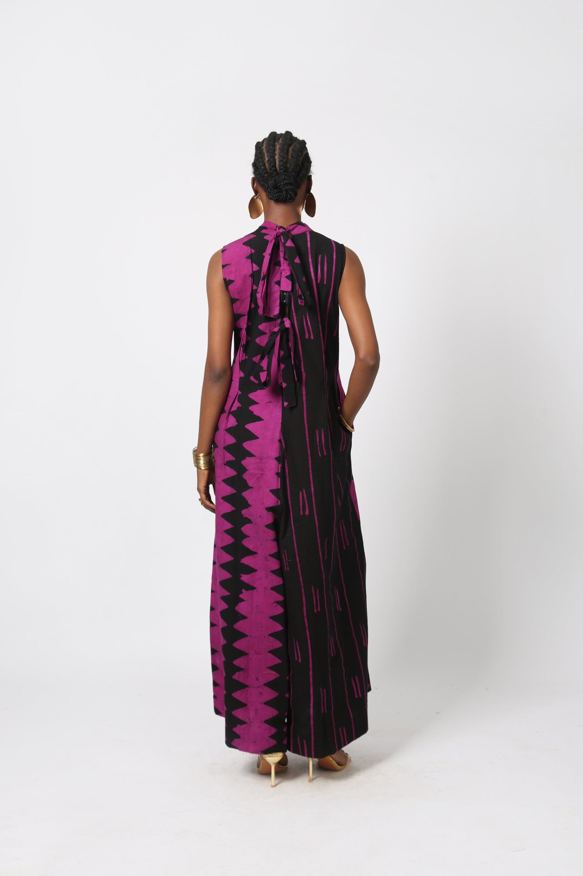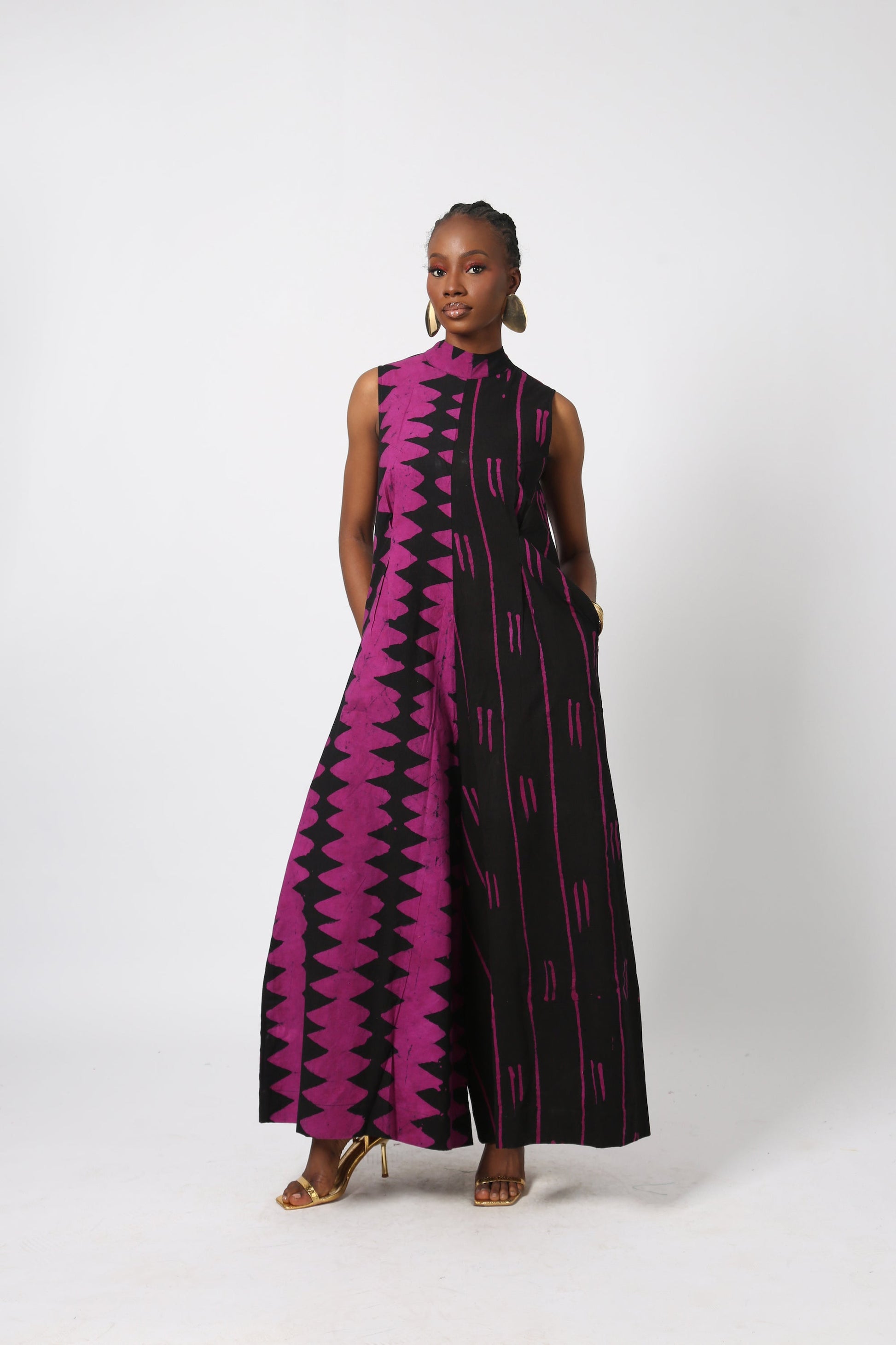 MAGENTA AND BLACK MULTIPRINT JUMPSUIT