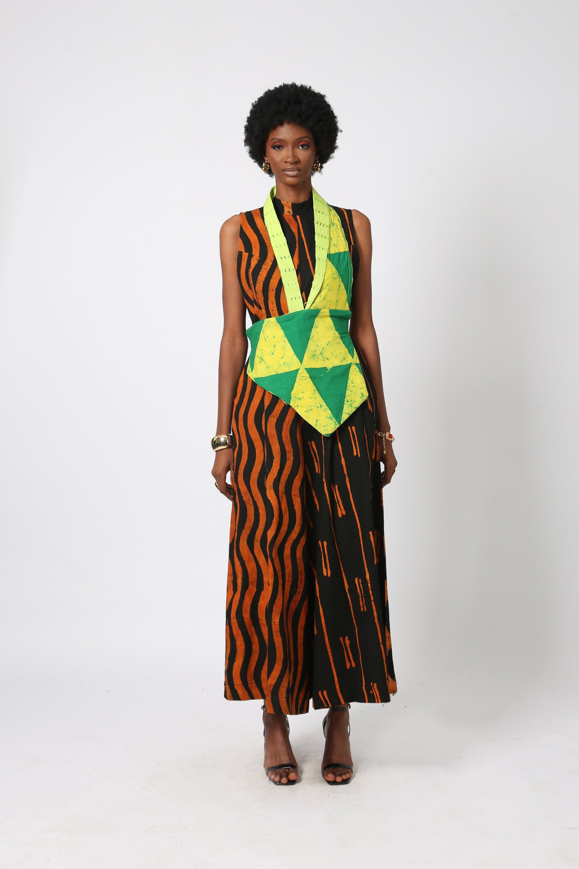 Each Dye Lab piece is made from small batches of hand-dyed textiles using batik wax to achieve our own formulated colors and prints and produced in Nigeria working with local artisans.