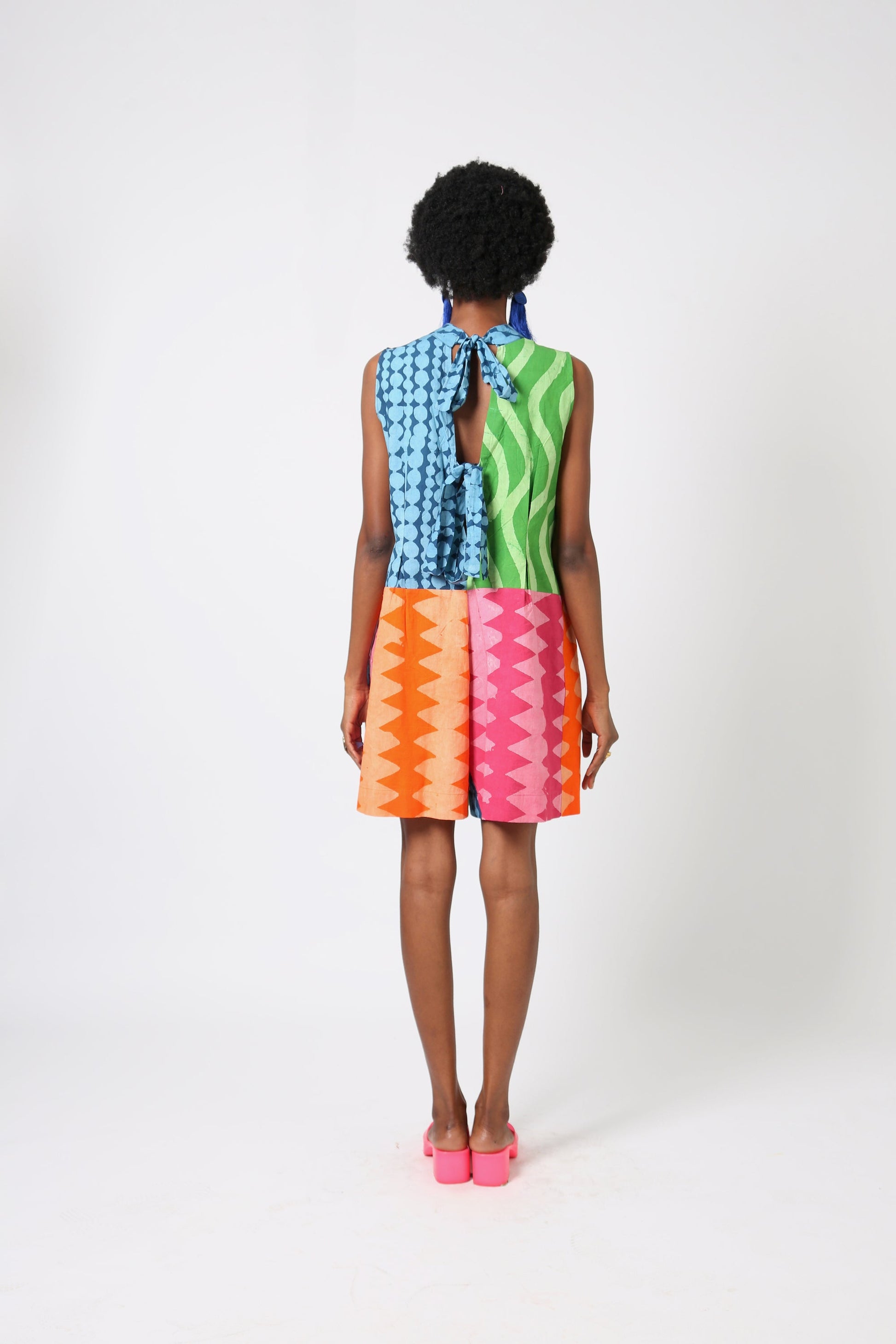 PINK AND TANGERINE MULTICOLOURED PLAYSUIT