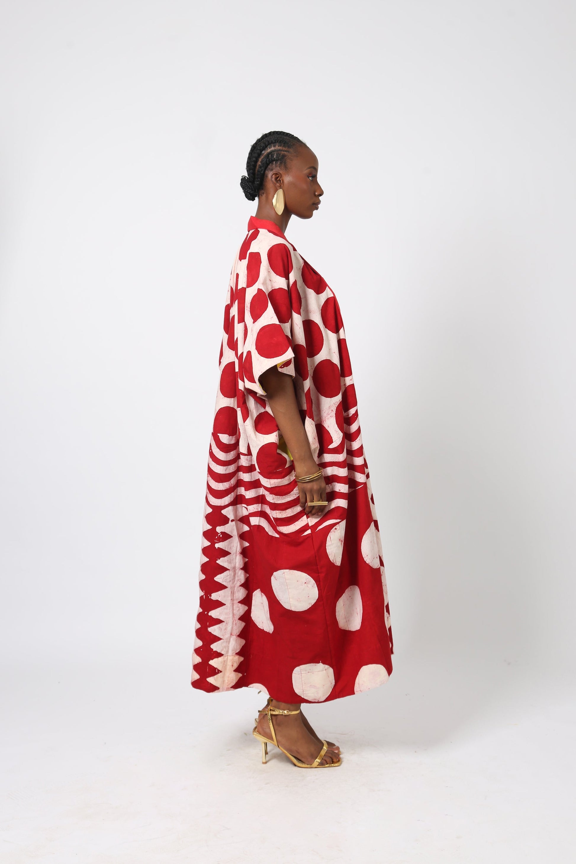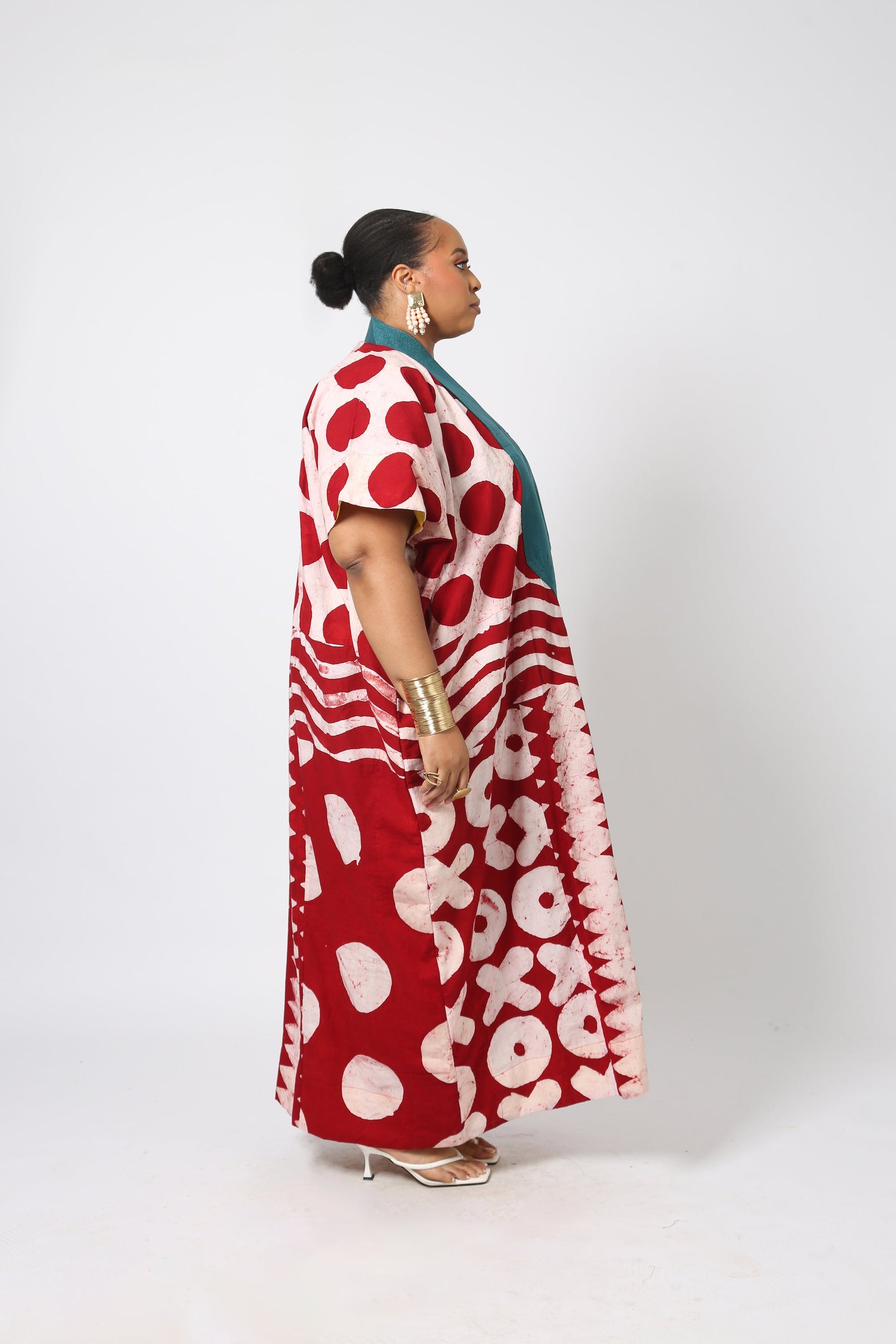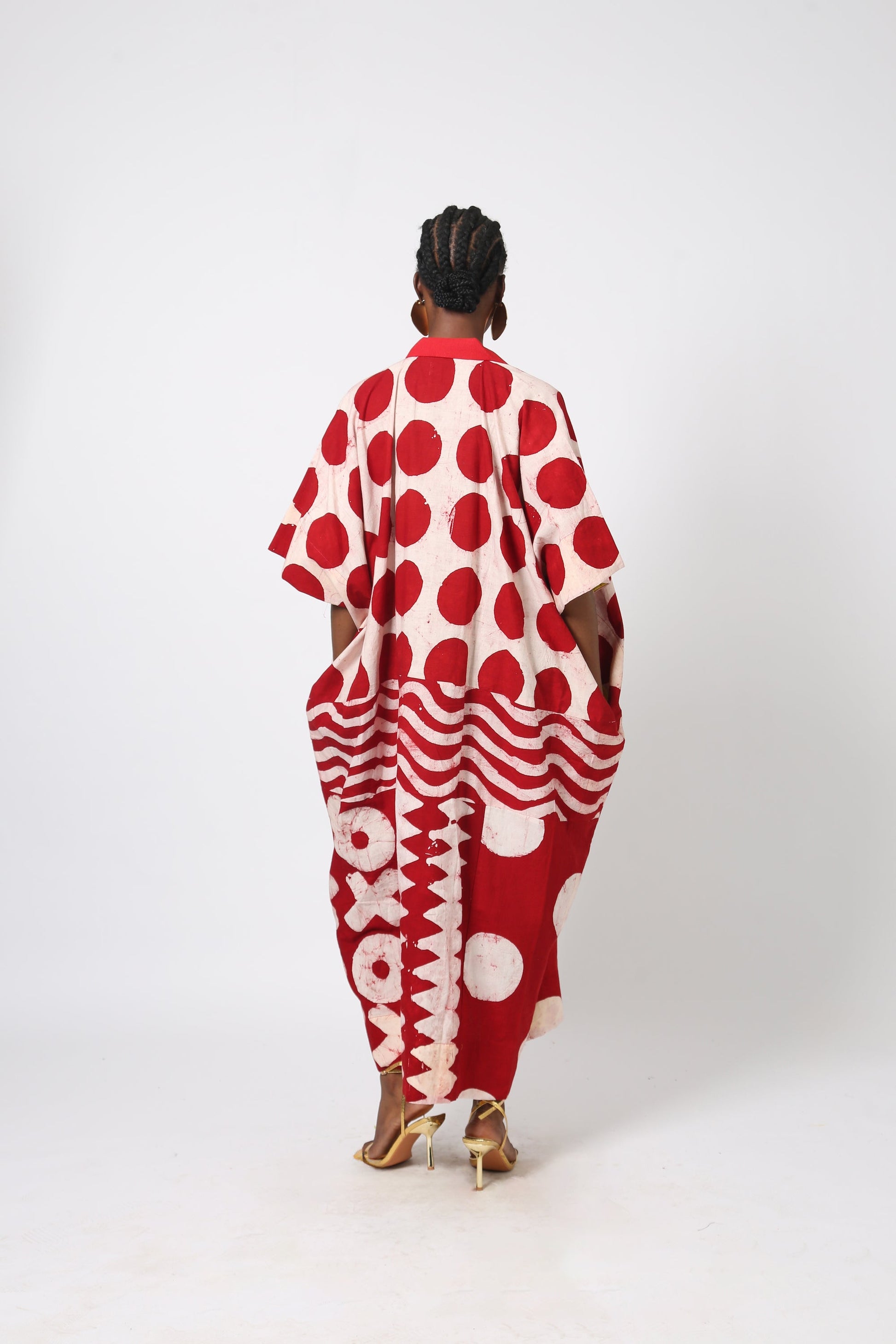 Each Dye Lab piece is made from small batches of hand dyed textiles using batik wax to achieve our own formulated colors and prints and produced in Nigeria working with local artisans.