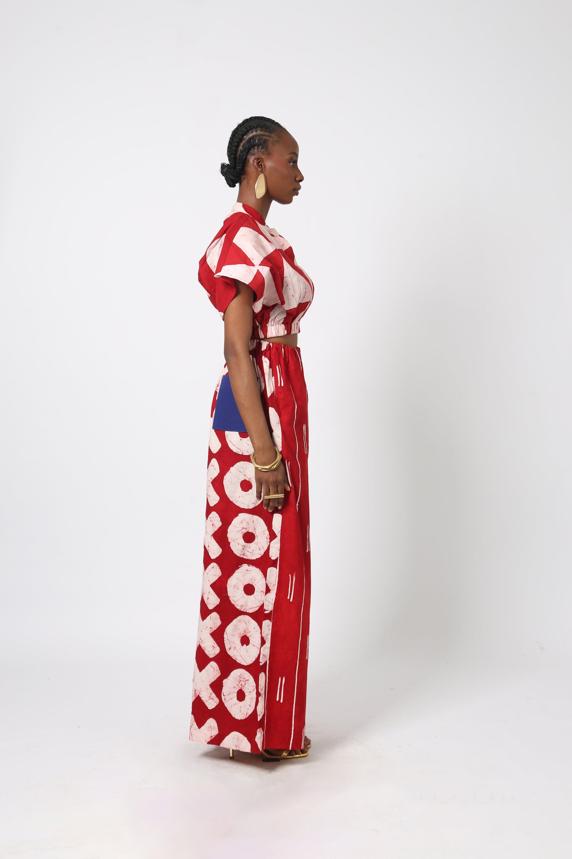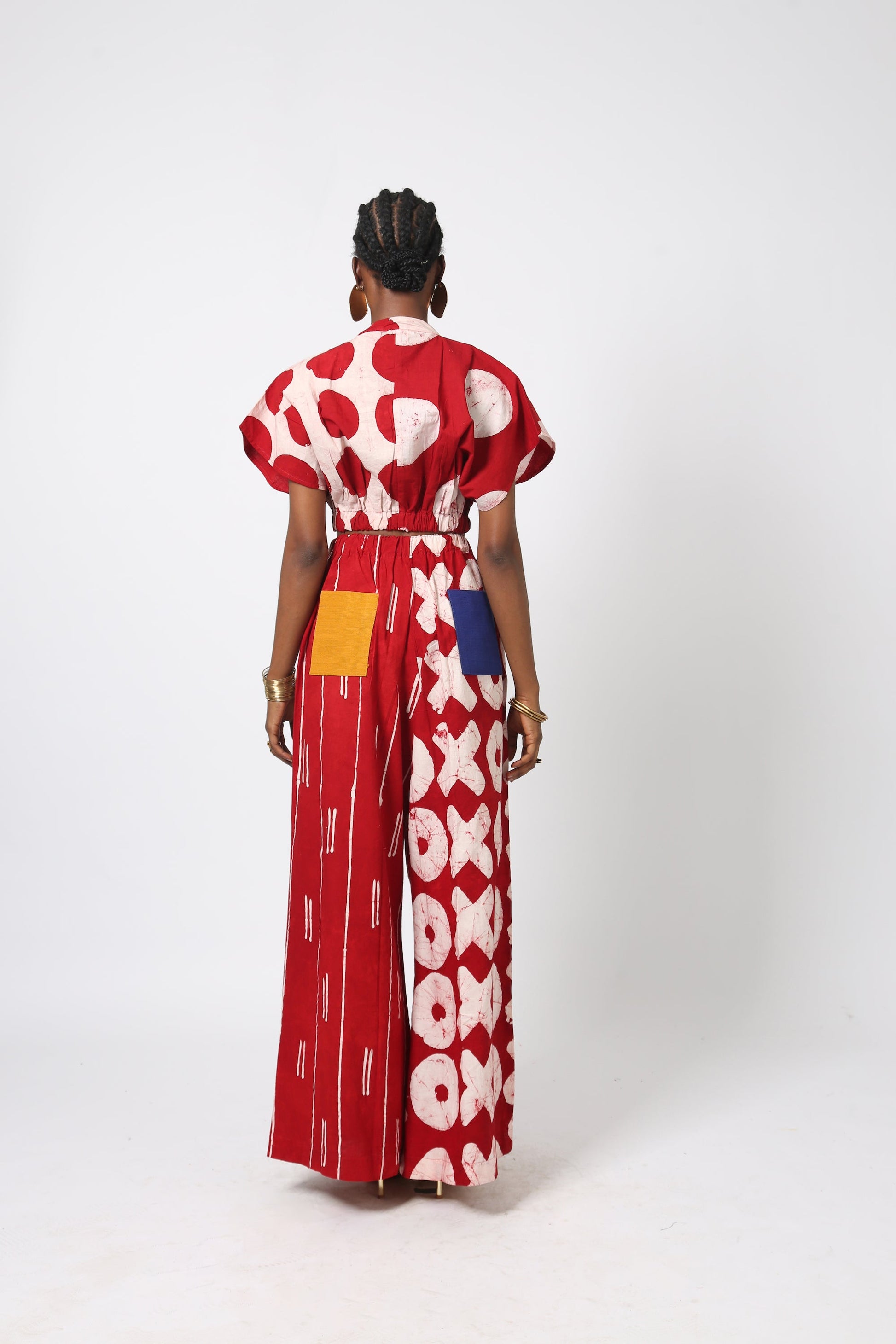 Each Dye Lab piece is made from small batches of hand dyed textiles using batik wax to achieve our own formulated colors and prints. and produced in Nigeria working with local artisans.