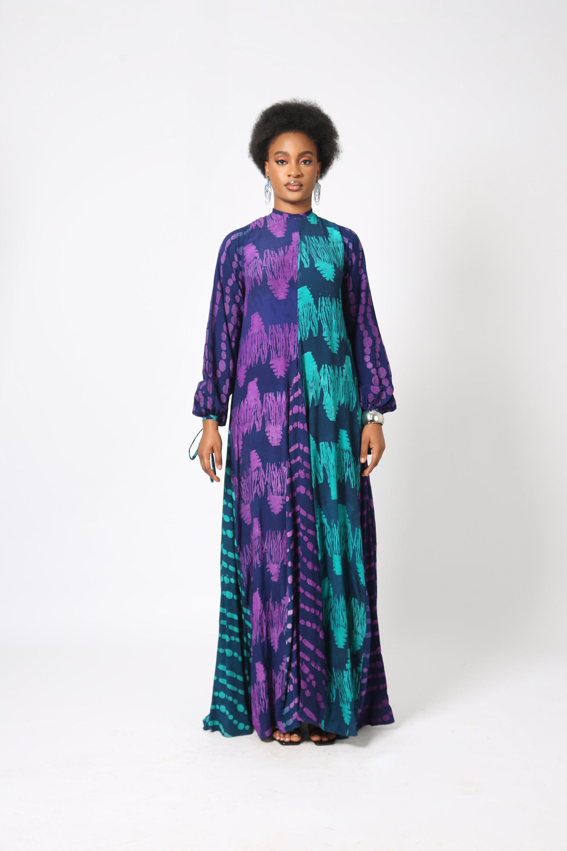 Each Dye Lab piece is made from small batches of hand dyed textiles using batik wax to achieve our own formulated colors and prints and produced in Nigeria working with local artisans.